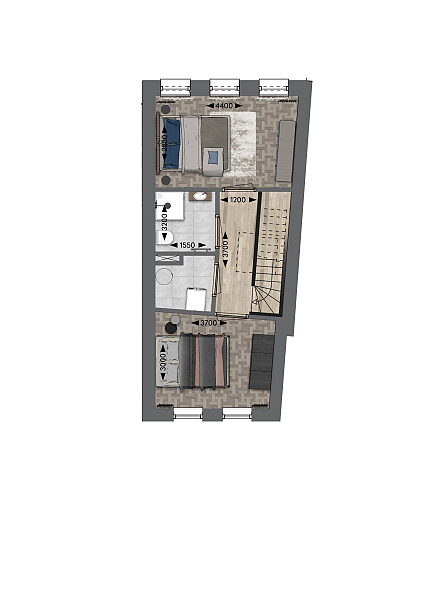 naar de eerste verdieping met direct de ingang naar maisonnette F.