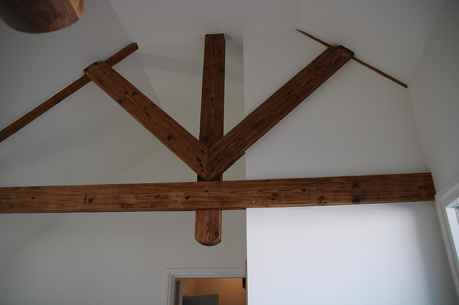 heeft prachtig hoge ramen met veel lichtinval en een plafond van zo’n 3,4 meter hoog. Elk appartement heeft een eigen balkon waar je kunt genieten van het buiten "zijn". Op de tweede verdieping, onder het karakteristieke dak met authentieke houten balken, bevinden zich de appartementen D en E, met een plafondhoogte van ongeveer 4,2 meter, wat een gevoel van ruimte en allure geeft.
