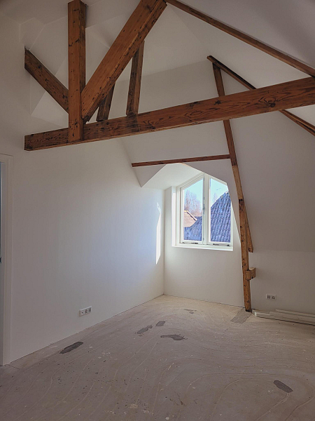 Laten we het hebben over het beschikbare appartement, namelijk appartement E. Dit bijzondere appartement biedt een prachtig hoog plafond met zichtbare authentieke balken, een ruime woonkamer met open keuken. Met 2 slaapkamers, een badkamer, een separaat toilet en een apart washok heb je hier alle ruimte die je nodig hebt. Maar het pronkstuk van dit appartement is de eigen privé loggia van ongeveer 9 m², waar je kunt genieten van het buitenleven. Dit appartement is al bijna volledig gereed, dus kom snel langs en laat je betoveren door de schoonheid en de mogelijkheden.