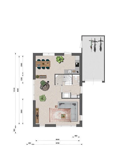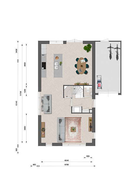 een aangebouwde gemetselde berging, erg handig! Wil je nog meer ruimte voor bijvoorbeeld een luxe keuken met spoeleiland? Kies optioneel voor een 1,20 of 2,40 meter verlenging aan de tuinzijde en fraaie tuindeuren.